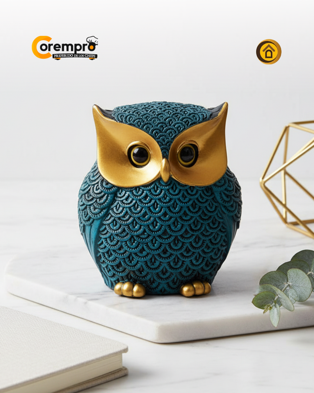 Esta escultura de búho combina la artesanía detallada con una estética contemporánea. Fabricada en resina de alta densidad, la pieza presenta un acabado mate en el cuerpo que resalta el brillo metálico de sus facciones doradas. El búho, reconocido universalmente como símbolo de intuición y conocimiento, es aquí reinterpretado como un objeto decorativo de alta gama, ideal para oficinas creativas o salas de estar que buscan un punto focal con carácter.
