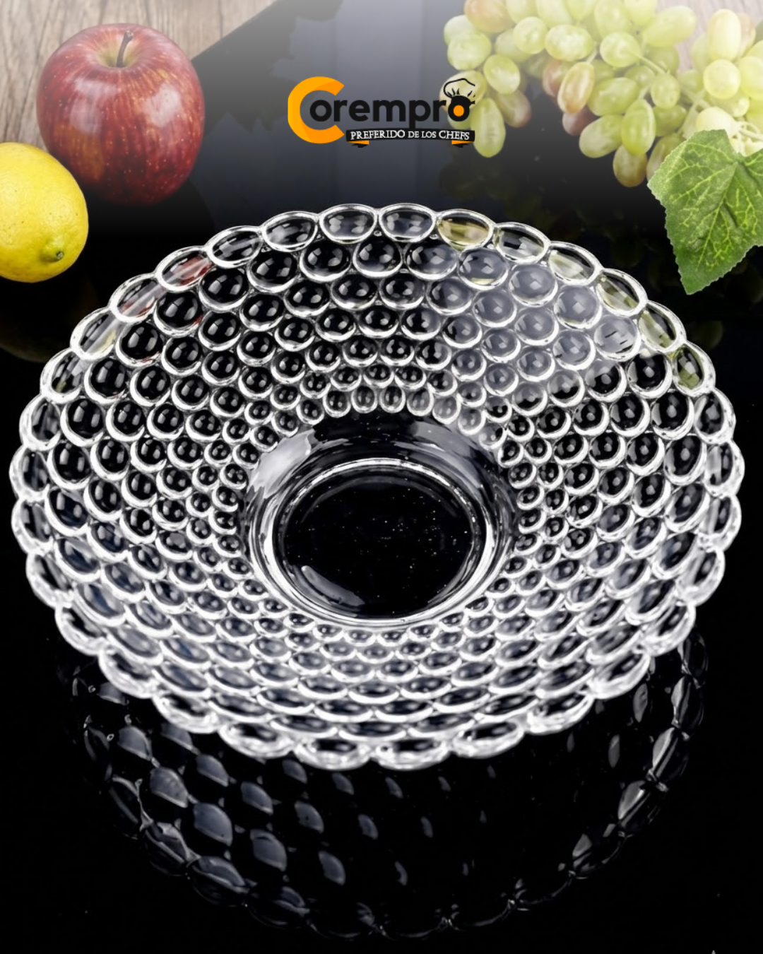 • Cristal de Alta Calidad: Fabricado con cristal transparente de alta calidad, que resalta los colores vibrantes y la frescura de tus alimentos.