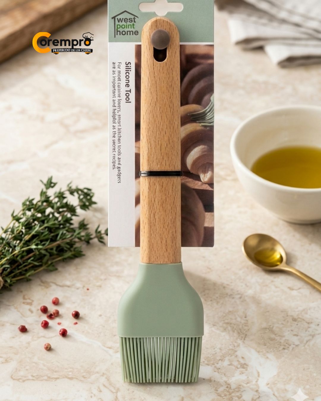 La Brocha de silicon es la aliada perfecta para tus recetas. Su diseño ergonómico de 27.5 cm te permite barnizar y aplicar ingredientes con total comodidad y resistencia.