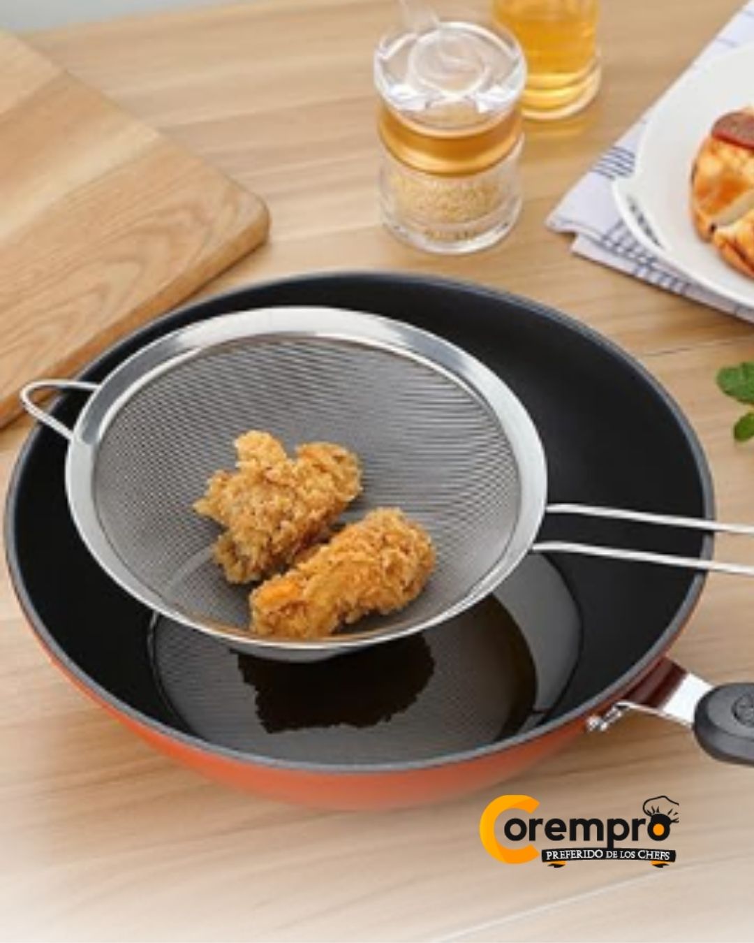 El complemento indispensable para procesar alimentos con rapidez. Este colador destaca por su versatilidad: desde escurrir caldos calientes hasta cernir ingredientes secos con total uniformidad. Su diseño incluye un mango ergonómico y soportes de apoyo que permiten colocarlo de forma estable sobre bowls o cacerolas, facilitando el trabajo con las manos libres.