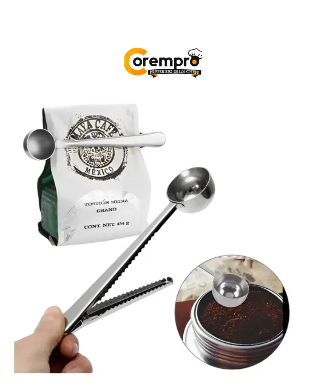 Etiquetas: cuchara con clip, cuchara medidora de cafe, cuchara medidora y selladora de cafe