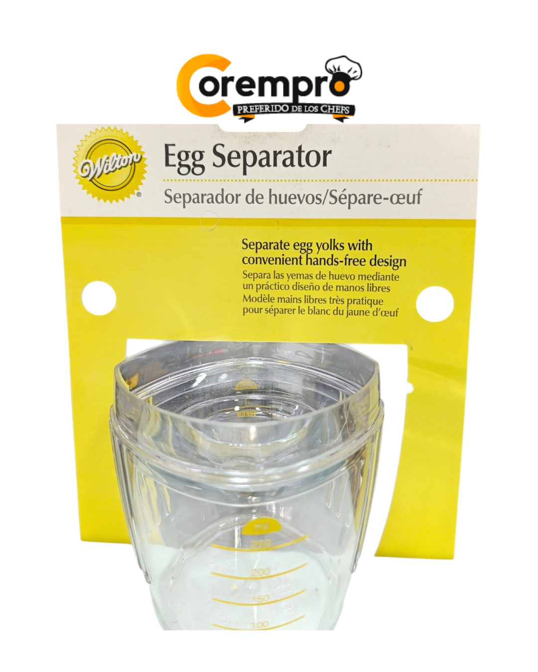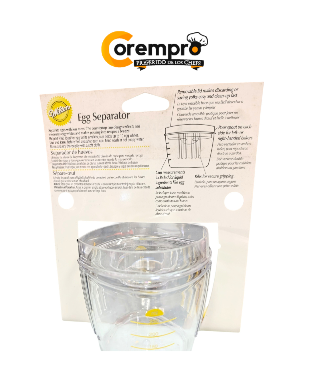 - Vertido fácil: Boquilla diseñada para pasar las claras a otro recipiente sin derrames.