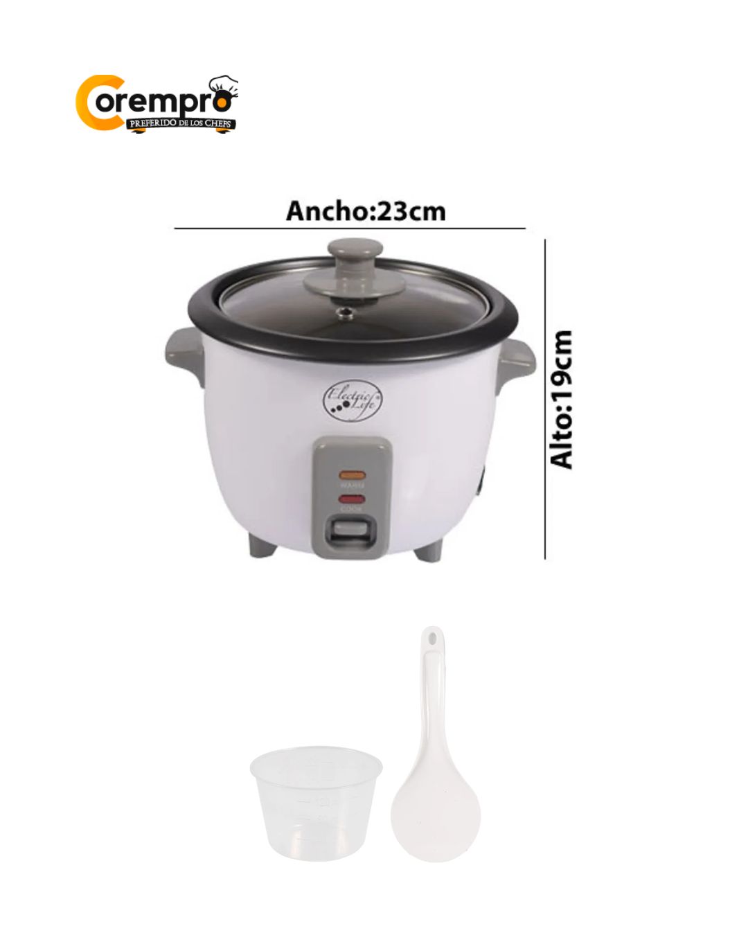 Con una capacidad de 0.6 litros, esta olla arrocera de la línea Electric Life combina un diseño moderno con una operación simplificada de un solo toque. Su tamaño estratégico permite preparar la cantidad justa de arroz (aprox. 3 tazas cocidas), evitando el desperdicio y asegurando una textura esponjosa en cada uso. Es un electrodoméstico ligero, fácil de almacenar y con un acabado elegante que se adapta a cualquier estilo de encimera.