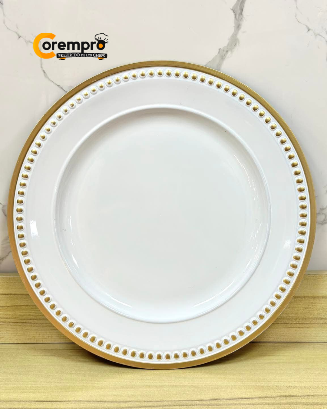 Etiquetas: plato base, porta plato blanco, Porta Plato Blanco Filo Dorado 33 cm