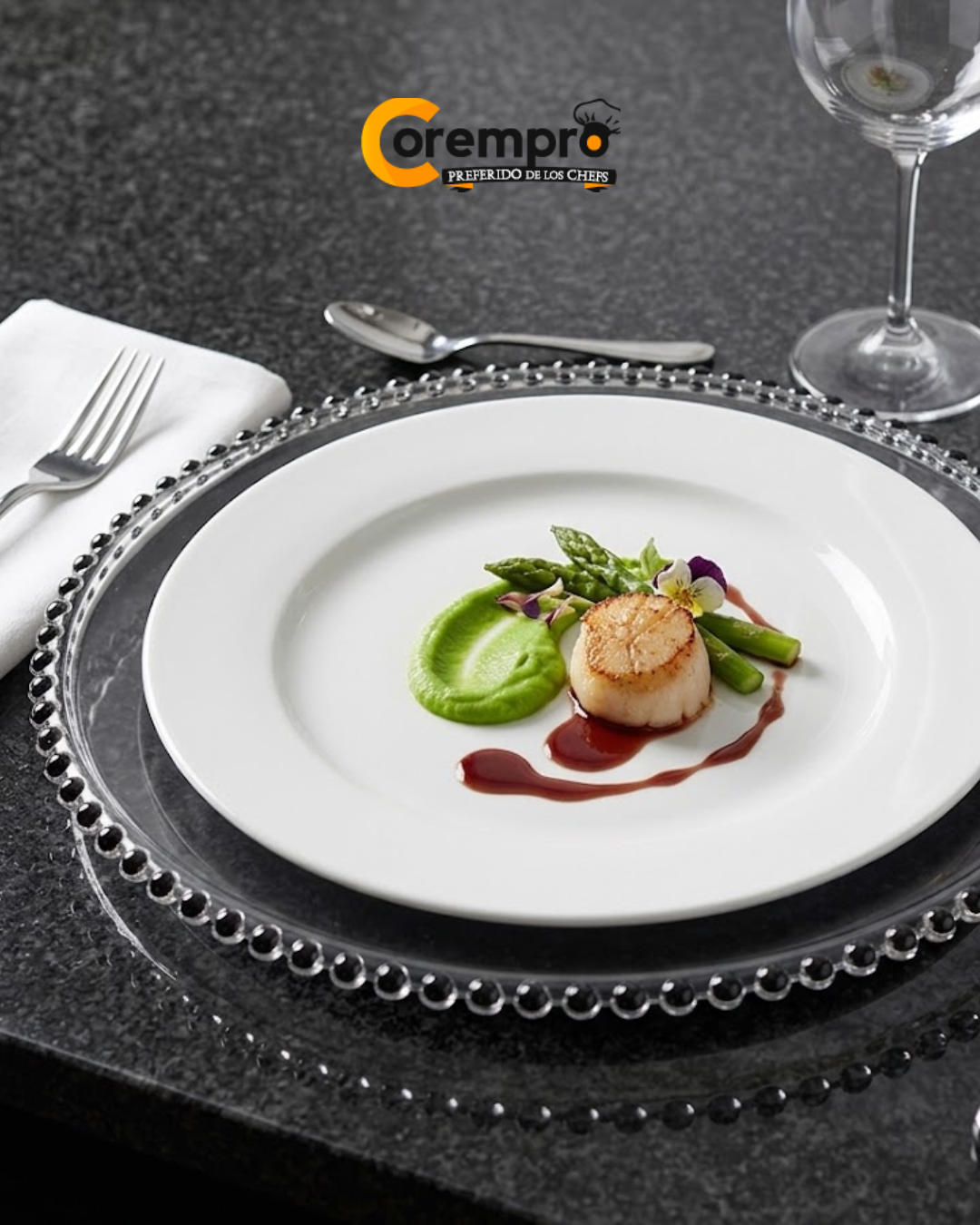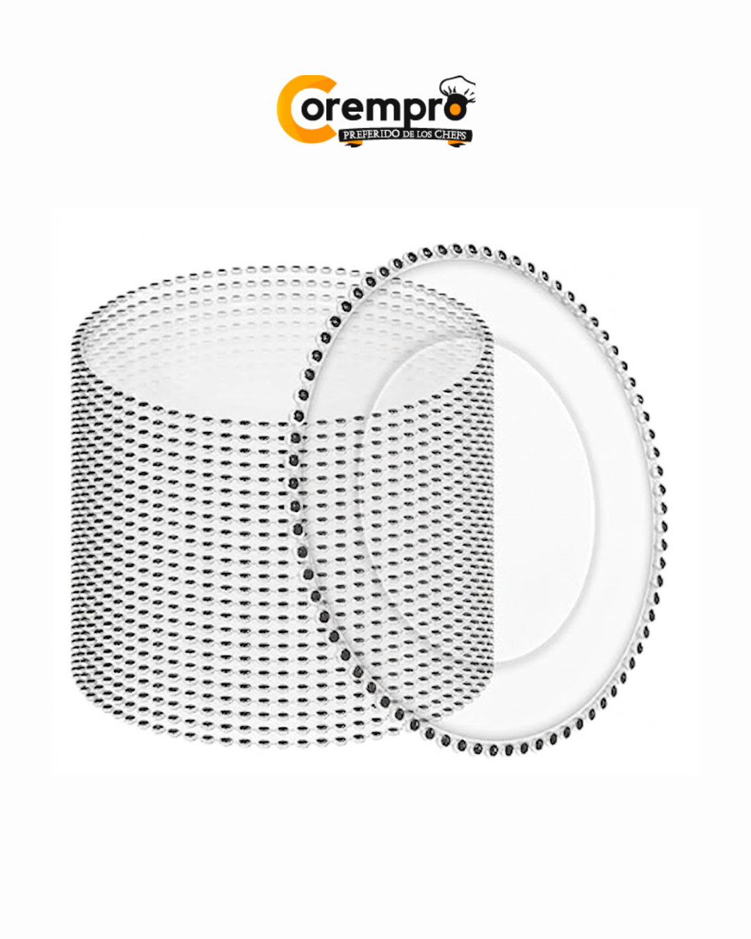 Plato Base Redondo Transparente con Borde de Cuentas Negras