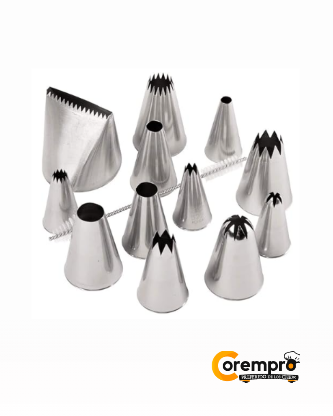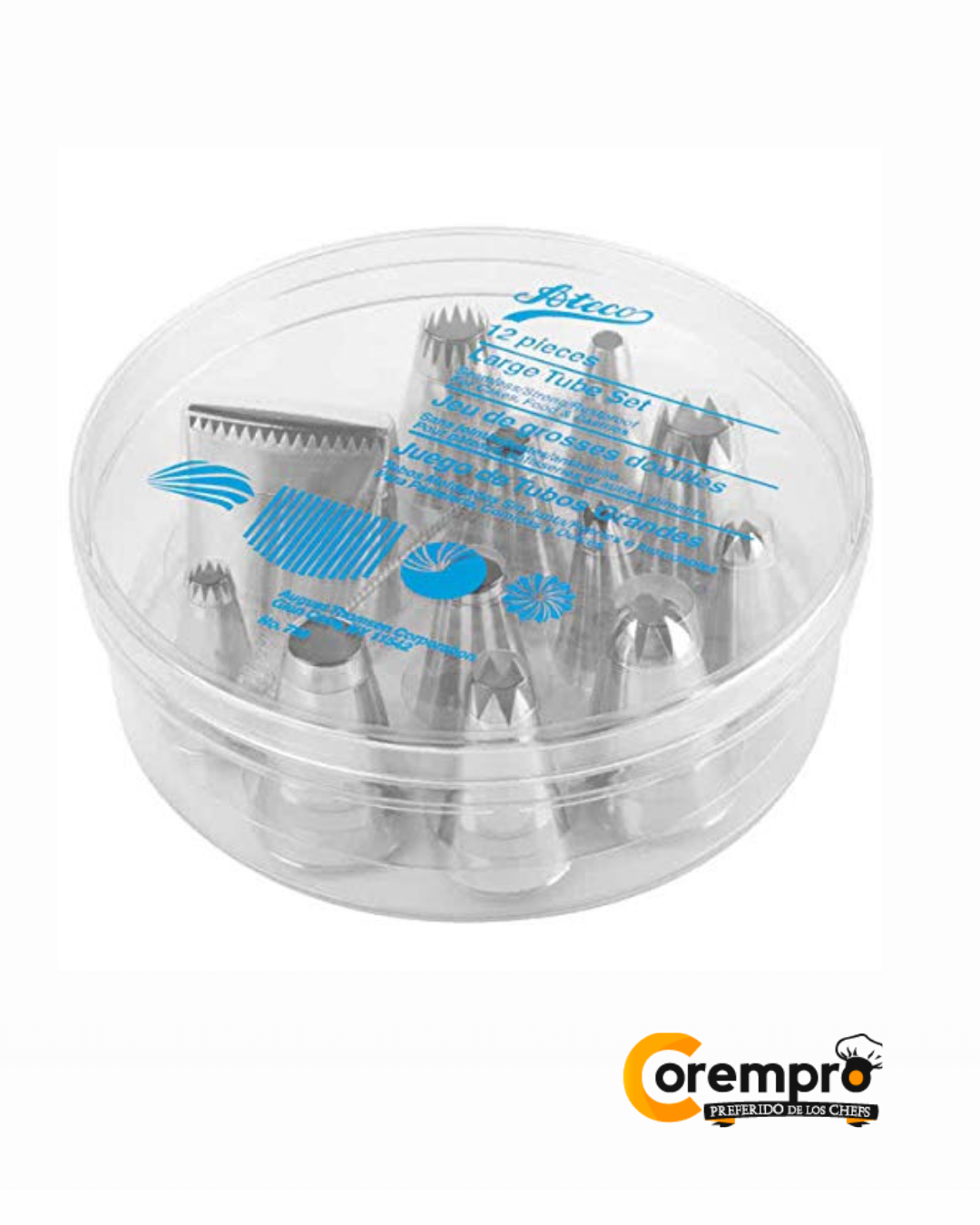La solución completa para el repostero exigente. Este kit de la reconocida marca Ateco ofrece una selección versátil de boquillas grandes en un elegante color plateado. El set viene en una práctica caja de almacenamiento que mantiene tus herramientas organizadas, protegidas y siempre a mano. Su material de acero inoxidable de grado alimenticio asegura una larga vida útil, manteniendo su brillo y resistencia con el paso del tiempo.