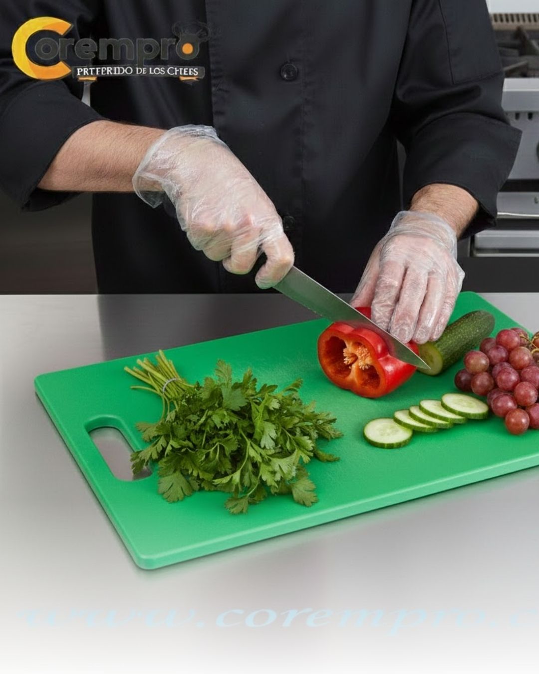 Ya sea que esté operando una panadería, un café o un restaurante de 5 estrellas, es importante preparar de manera segura y eficaz sus elementos de menú, y con la ayuda de esta tabla de cortar poli verde de 37 “x 25”, ¡ahora es más fácil que nunca practicar métodos!